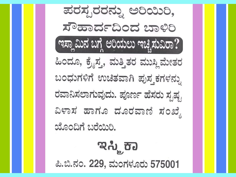 A Postal Library, P.B.No.229, Mangalore - 575001, e-mail:ismika229@gmail.com